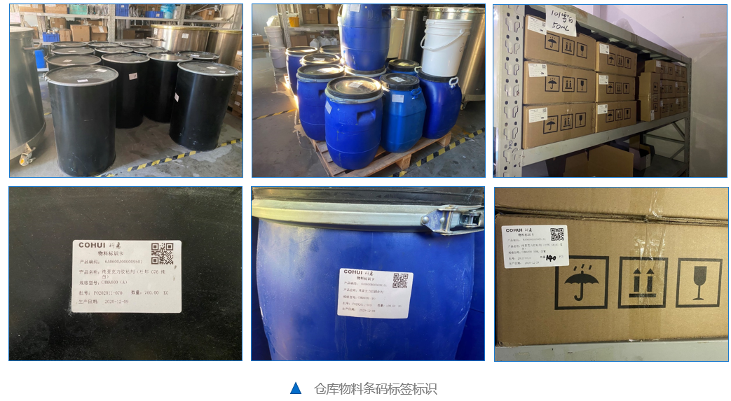 庫存管理方面,本次科惠化工使用了順景的條碼管理,從流程上建立倉庫“見單收料,見單發料”的管理原則,并且從物料編碼源頭,規范了基礎數據的準確性,再結合順景ERP系統內所產生的物料條碼標簽,實現了庫存物料的準確性管理,確保物料準確;