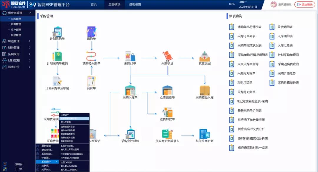 供應(yīng)鏈管理模塊分為:《采購管理》、《銷售管理》、《庫存管理》、《批號(hào)管理》模塊